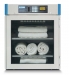 This warming cabinet is suited for use under a counter-top or in limited spaces. Its door comes in either glass or stainless steel. Each unit comes standard with two adjustable perforated stainless steel shelves.